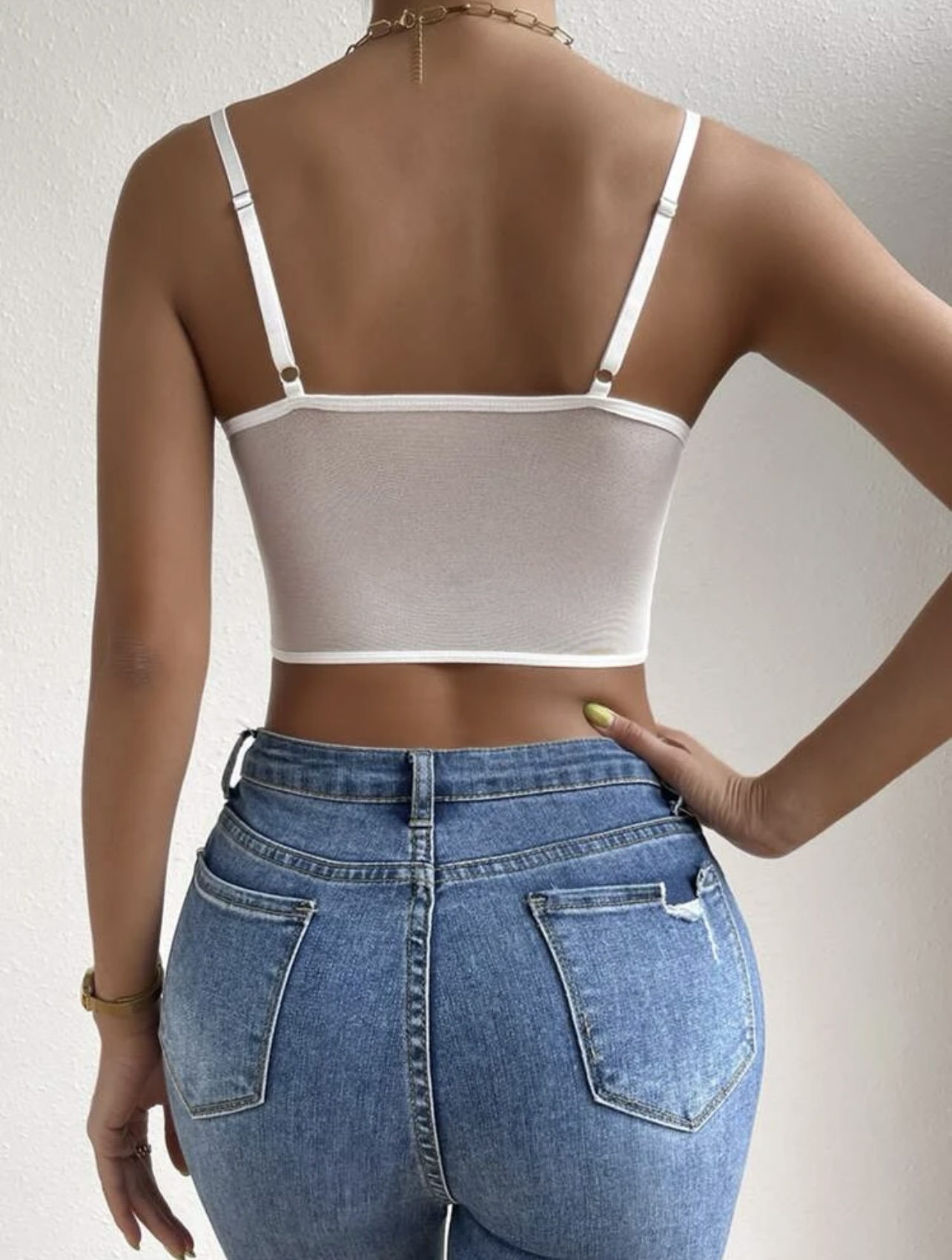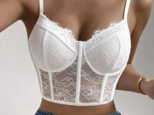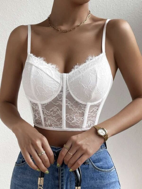 Bustier IMPORTADO color blanco de suave encaje y tirantes elastizados. Con aro en la zona de bustos y elastizado en la espalda. Calce perfecto al cuerpo y excelente calidad. [Articulo 5b]